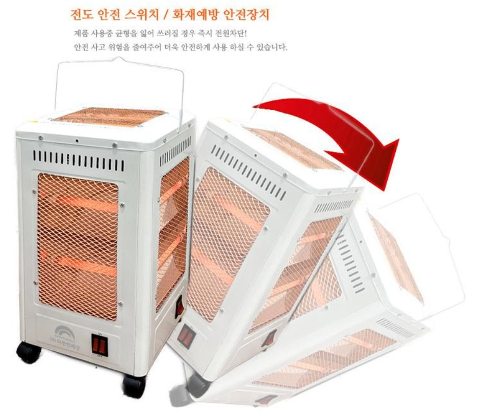 화재 예방 안전장치와 전도(넘어짐) 차단 스위치를 탑재해,